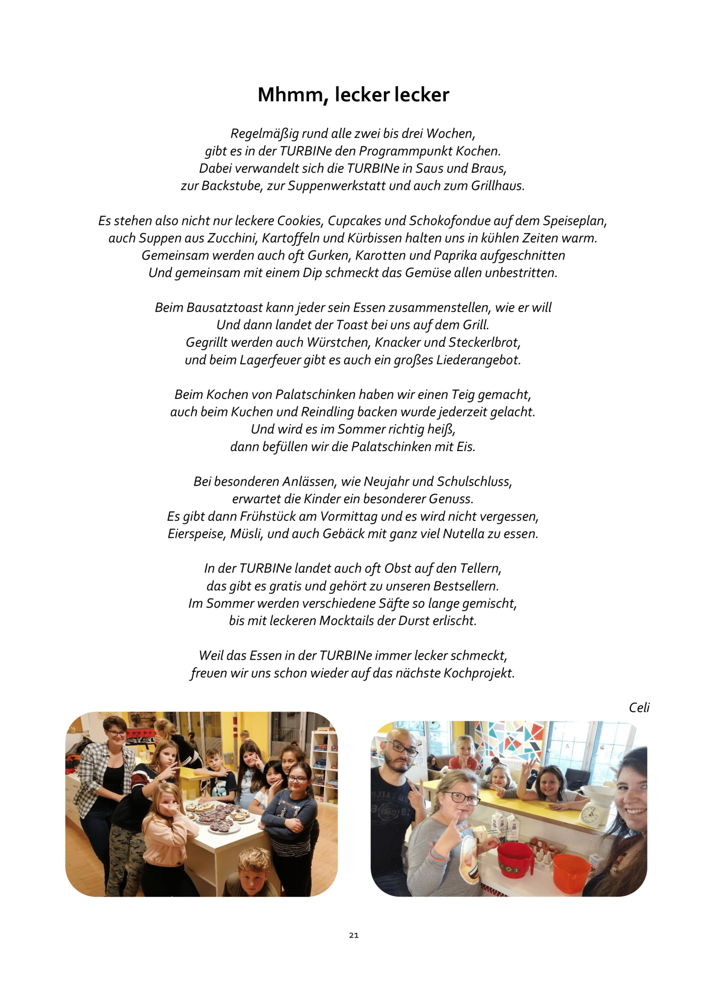 Taucht in die Welt der TURBINe ein und lasst euch von lustigen, spannenden, interessanten, emotionalen und informativen Erlebnissen, Erzählungen und Geschichten von und Rund um die TURBINe, bereichern. Natürlich gibt es auch einige Fotos und Berichte unserer Kids mit denen es uns immer eine Freude ist eine wervolle und sinnvolle Zeit in der TURBINe zu verbingen. Danke an die Spenderinnen und Spender, die das möglich machen.