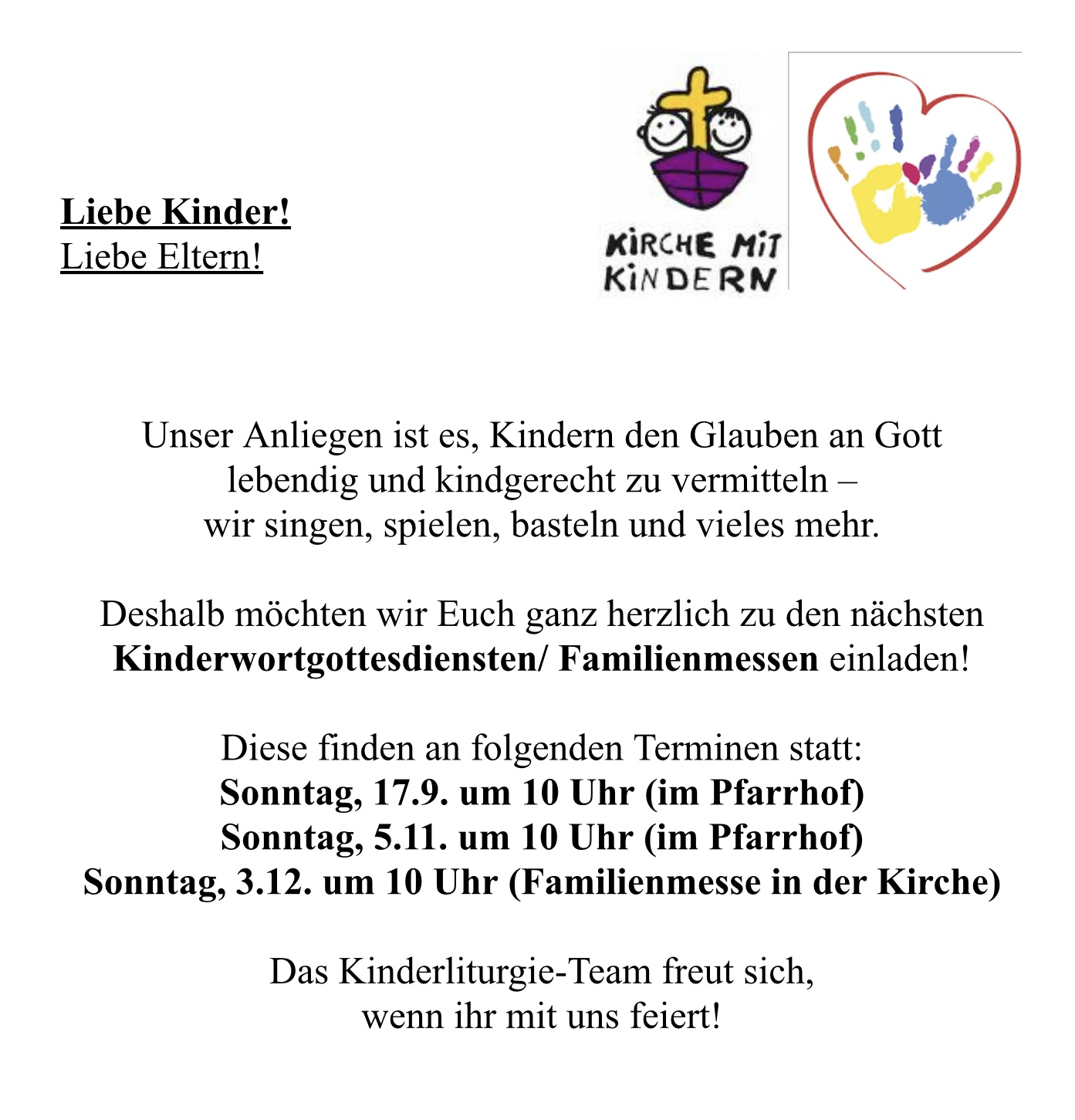 Einladung zum Kinderwortgottesdienst