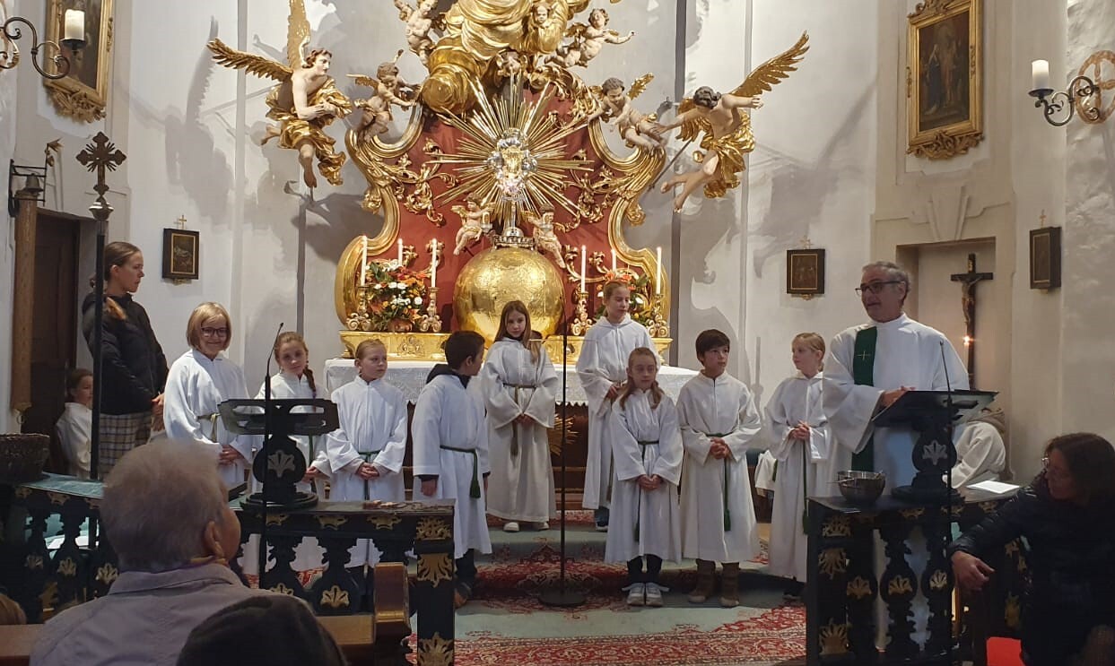 Am Sonntag, den 20. Oktober, fand in unserer Pfarrkirche die feierliche Aufnahme unserer neuen Ministranten und Ministrantinnen statt. Wir freuen uns, so viele engagierte junge Menschen in unserer Gemeinschaft willkommen zu heißen. Ein besonderer Dank gilt Anna Mayr, die mit großartigem Einsatz die Ministunden organisiert.