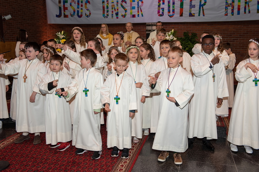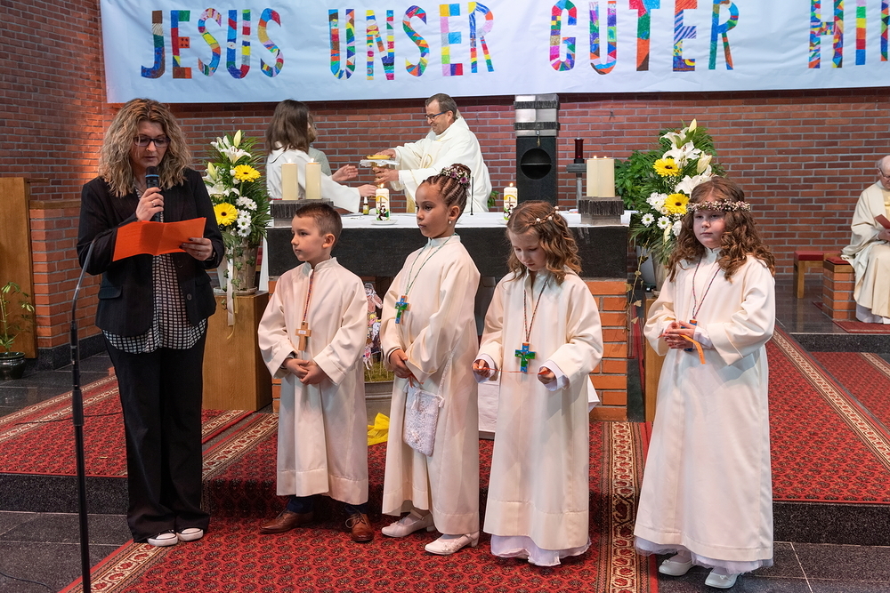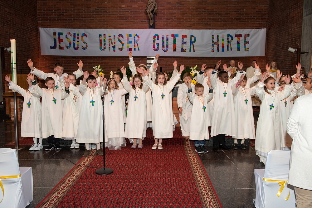 So erkläre sie den Kindern: im „heiligen Brot“ kommt Jesus so nah zu uns, dass es näher schon gar nicht mehr geht – wir empfangen Jesus und können so ganz sicher sein: Er lässt uns nicht allein, er ist unser guter Hirte.