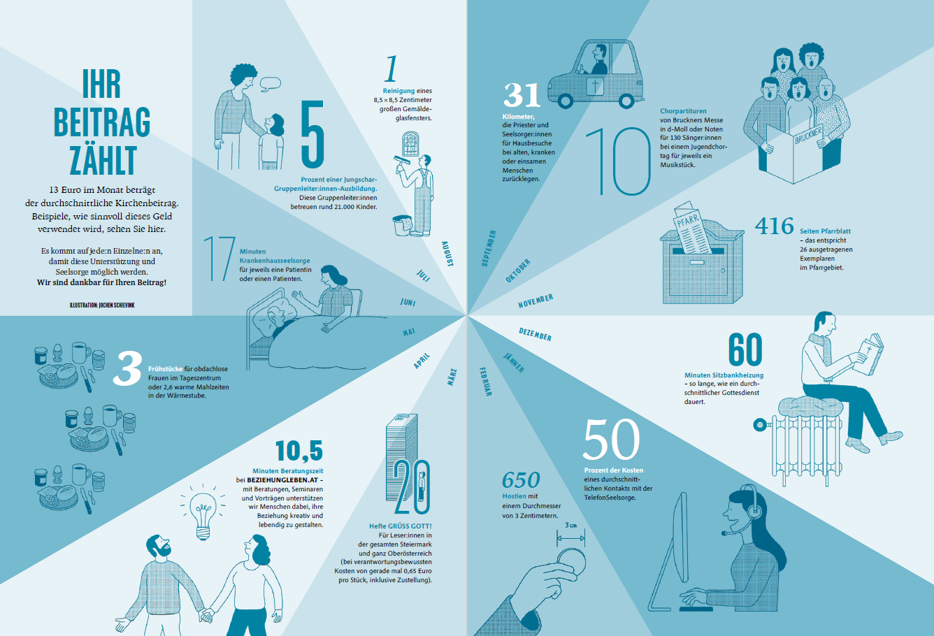 Die Grafik wurde erstmals in der Herbstausgabe 2024 von "Grüß Gott! – Magazin über Gott und die Welt" veröffentlicht. Das Magazin wird zwei Mal jährlich von der Katholischen Kirche in Oberösterreich und der Katholischen Kirche Steiermark herausgegeben.